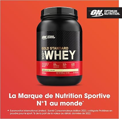 La 100% Whey Protein de Optimum Nutrition a toujours été un leader des Whey Protéines. Avec 23 g de protéine par portion, (voir l’équation de l’étiquette) c’est presque 81% du poids en protéines!